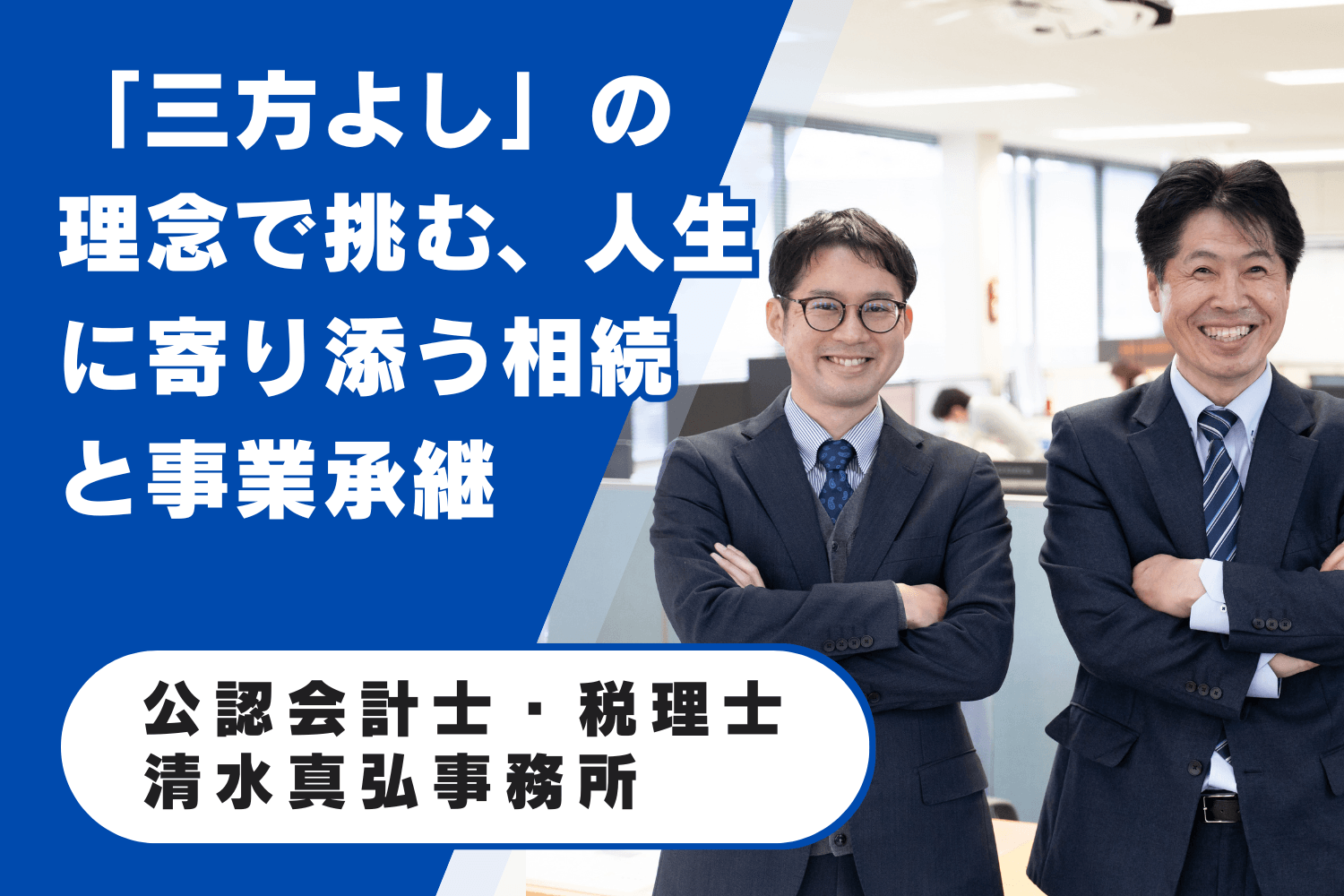 40年近く地域と共に歩む公認会計士・税理士 清水真弘事務所は、早期の資産把握から方針づくりまでを「三方よし」の理念で整理。専門家と地域ネットワークを活かした支援で、後継者不在のM&A支援まで幅広く対応する。