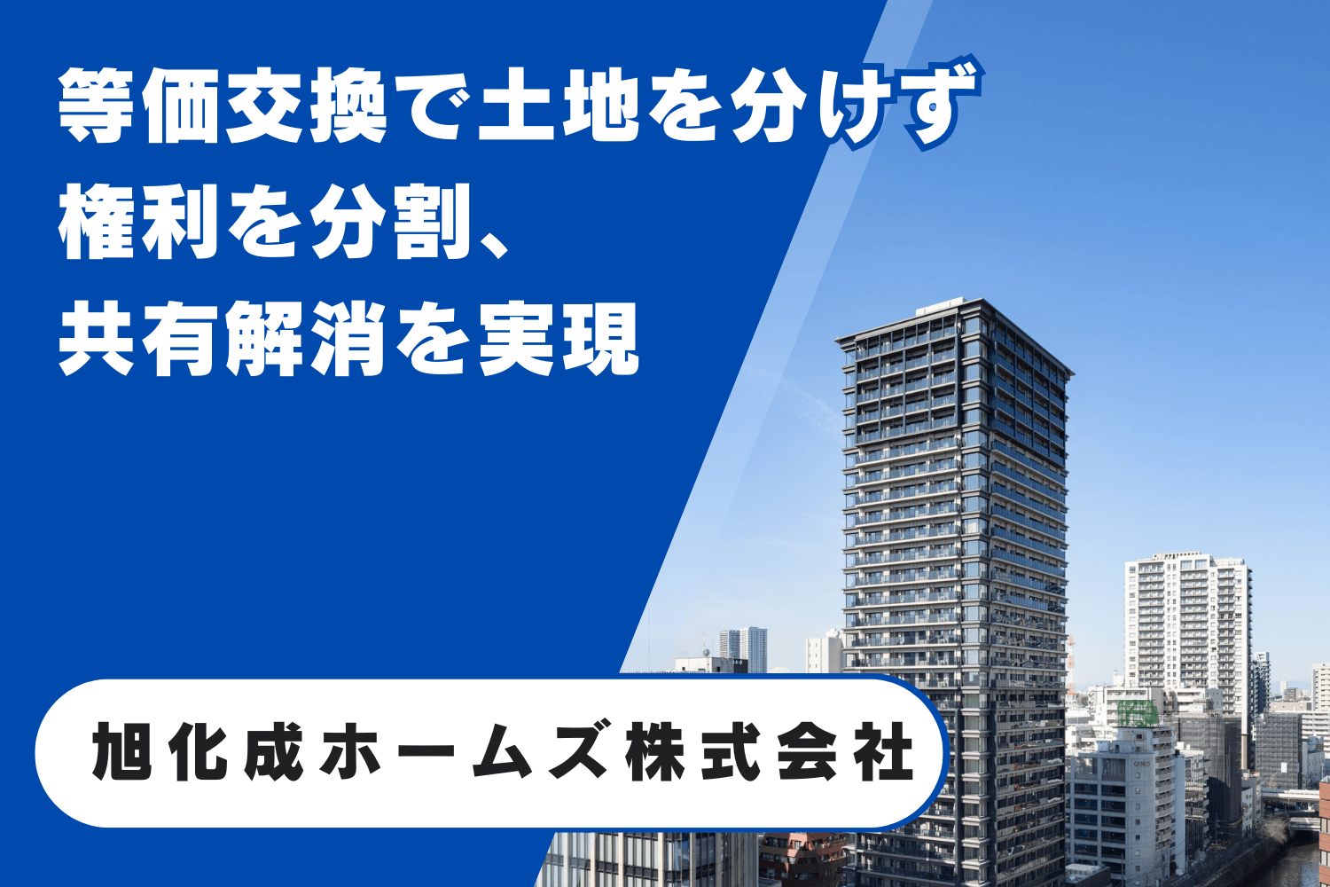 旭化成ホームズは、等価交換方式による土地活用で40年以上、150件超の実績を有する。土地を細分化せず、建築するマンションの「区分所有権」に紐づけて権利を分割できるため、共有者が多い土地でも、資産価値を維持しながら合理的な分割が可能となる。マンションの敷地に関する権利(敷地利用権)は建物の区分所有権と不可分で取引される特性から、共有持分をそのまま分けるよりも合理的かつ円滑に共有物分割を実現できる点が大きな強みだ。