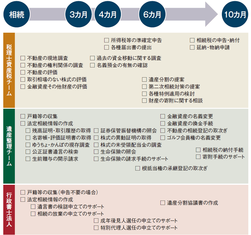 - 資産税チームと遺産整理チームが並走し対応